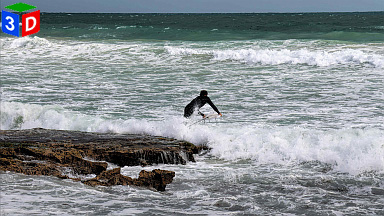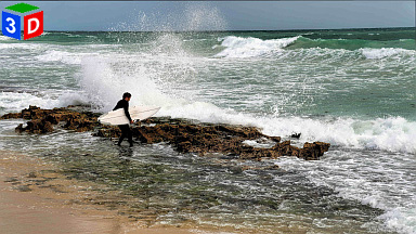 North Beach Surfer. A collection of images on a cold winter day of an intrepid surfer making his way out on the rocks before one final leap into the waves.