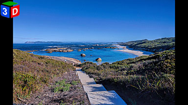 A short walk trail from the parking area takes you to a lookout over Elephant Rocks, with the trail then descending between the rocks to a sheltered cove. Providing a stark contrast to the granite that dominates this section of the coast, a strip of black dolerite lines the eastern edge of the bay.