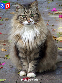 The images below show the effect of increases in the level of deviation set at the time of derived (stereo) image generation in 1.5% increments from 0.0% to 12.0%. These images were generated using the same reference photograph and ai derived depth map.